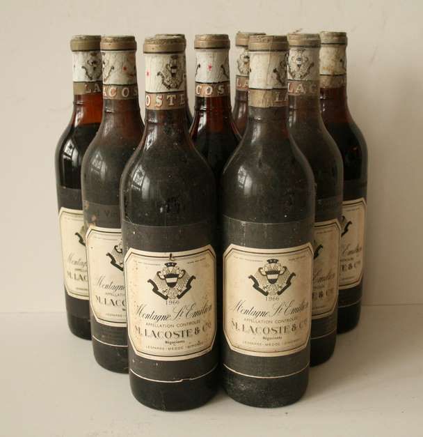 9 Flaschen von M. LACOSTE et Cie négociants, Rot, Montagne Saint-Emilion, 1966