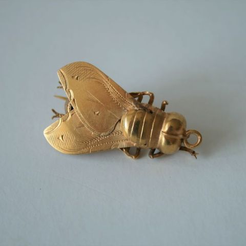 Rundes Knopfloch mit einem Smaragd von 0,20 ct und 8 Diamanten im Brillantschliff von je 0,05 ct, Fassung aus 750er Gelbgold - Gewicht: 2,42 g