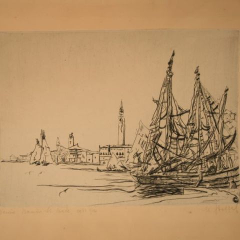 Michel STOFFEL (1903-1963), luxemburgischer Maler, Radierung: Venedig, Bassin St Marc, unten rechts signiert, gerechtfertigt 3/12 und datiert 1933 - Abmessungen: 34,5 x 44,5 cm + Canal à Venise, unten rechts signiert, gerechtfertigt [Radierung in schlechtem Zustand] - Abmessungen: 48,5 x 36,5 cm