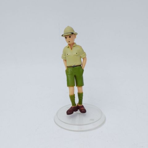 (TINTIN - COLLECTION), Tintin explorateur dans au "Tintin au Congo", Polychrome Hartplastik-Figur, Edition & Datum unbekannt, 5,8 cm, auf einem transparenten Sockel, guter Zustand, Seltenheit