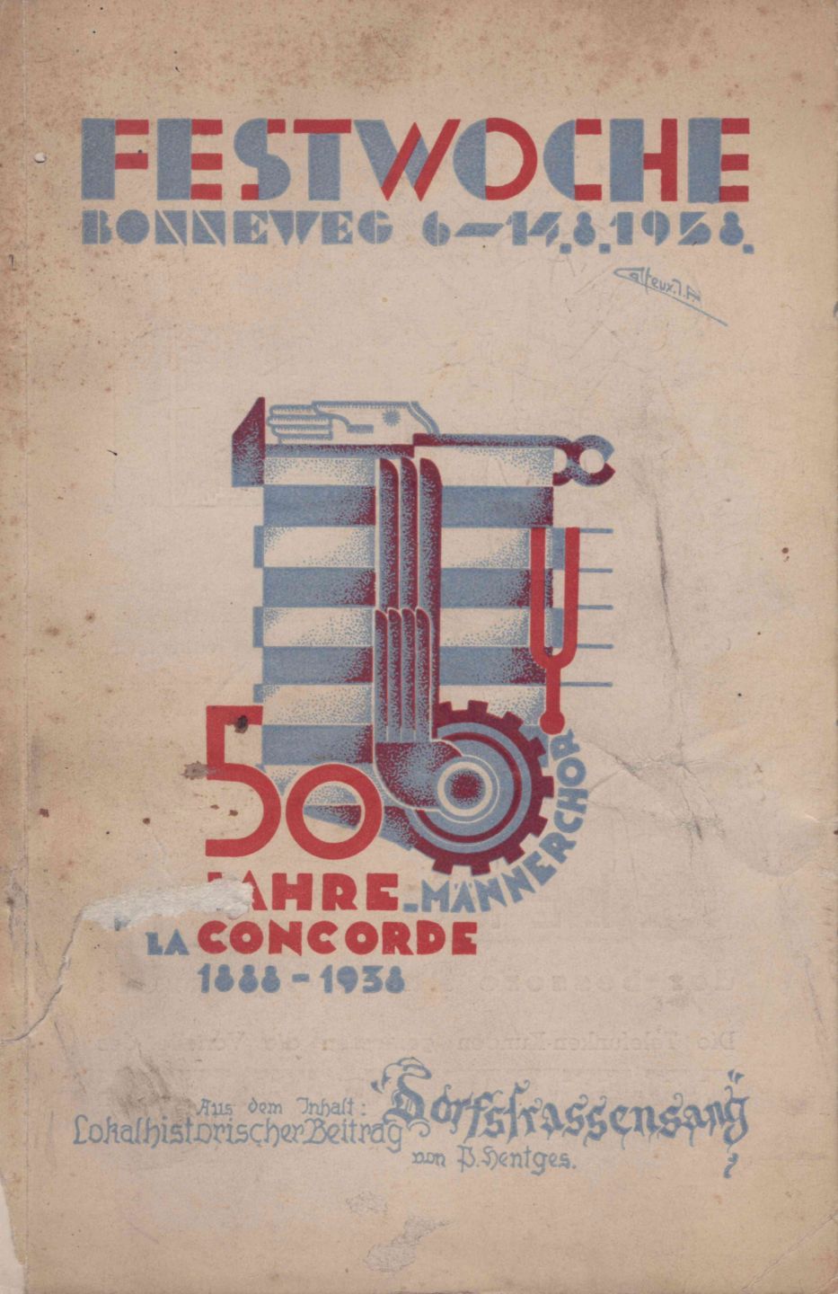 Festwoche Bonneweg 1938, 50 Jahre La Concorde 1888-1938, Umschlag gezeichnet von CALTEUX, Risse im Umschlag