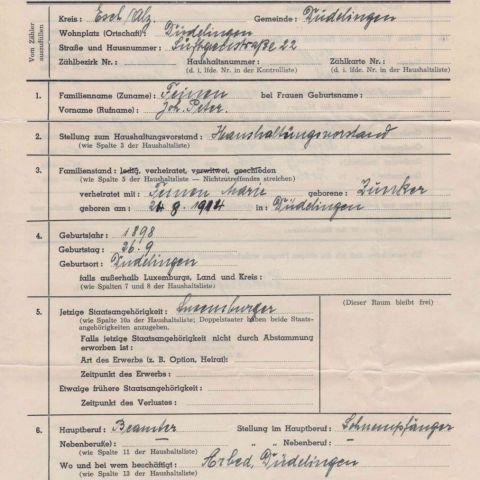 Familienzählung von Düdelingen aus dem Jahr 1941 in gutem Zustand