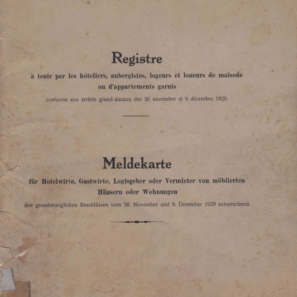 Interessantes Register "à tenir par les hôteliers, aubergistes, logeurs et loueurs de maisons ou d'appartements garnis", Hotel in Bettemburg von 1951 bis 1967, das Namen, Beruf und Adressen der Durchreisenden enthält.