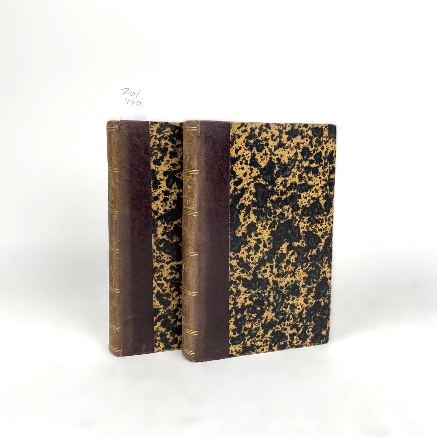 Band 1 & 2, klein In-8 Halbchagrin, mit goldgeprägtem Titel und Autor auf goldgeprägtem Rücken.
