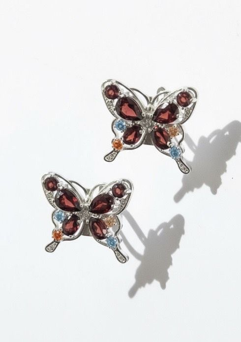 Ohrringe aus 925er Silber, Schmetterling mit Amethysten, Topasen und Citrinen besetzt