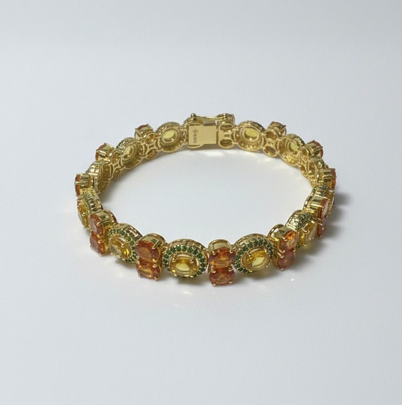 ARMBAND aus Silber 925/1000 besetzt mit orangefarbenen Saphiren aus Sri Lanka (30ct) und Tsavoriten (2.30ct). IGS-Zertifikat JW202506103498. Gewicht: 26,3 g.