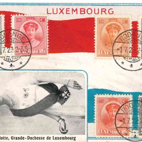 Postkarte mit den ersten Briefmarken der Großherzogin Charlotte, 1922