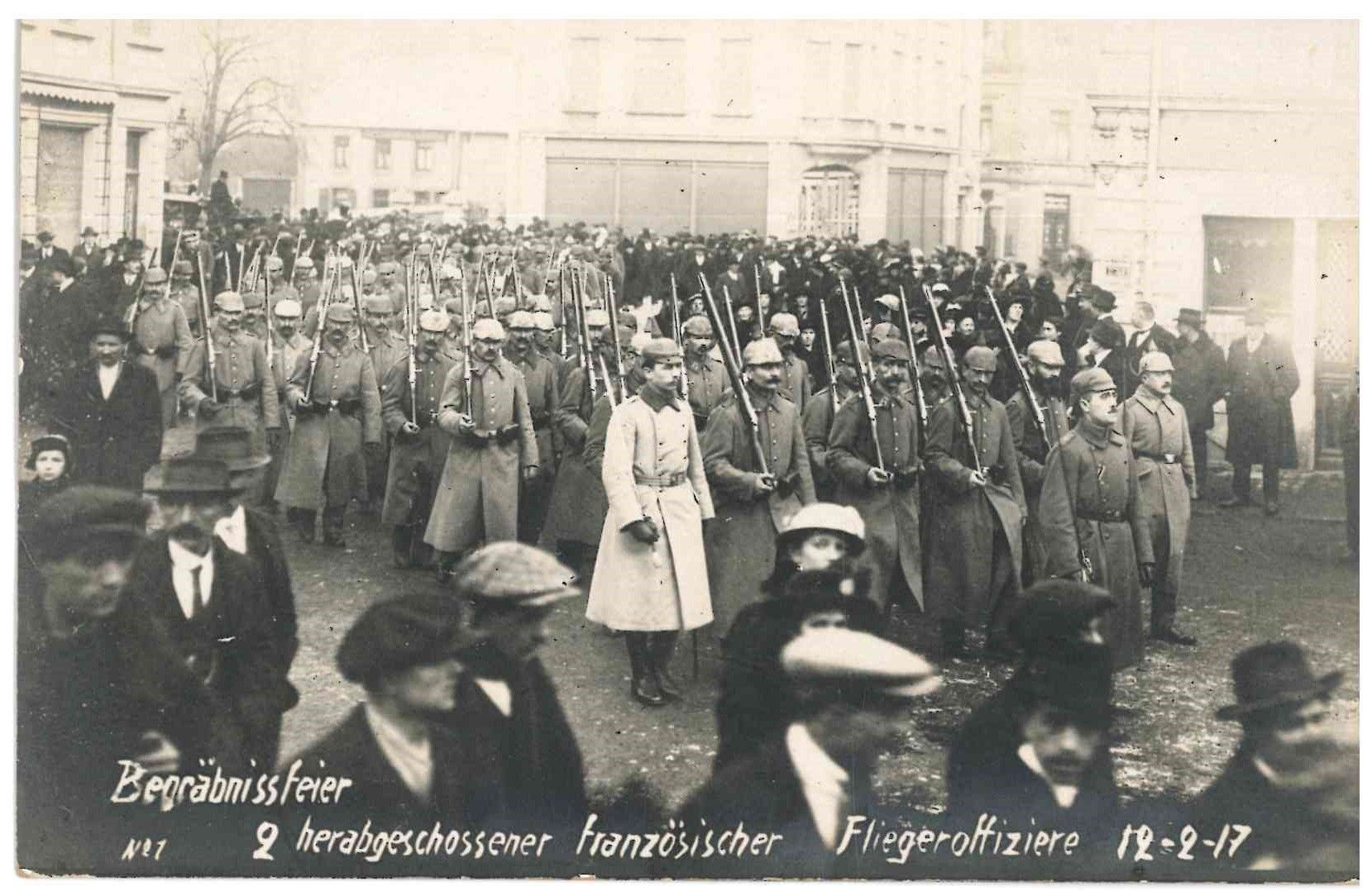 WAR I. Fotokarte von der Beerdigung der 2 abgeschossenen französischen Piloten in Luxemburg Begräbnissfeier 2 herabgeschossener französischer Fliegeroffizierter 12-2-17.