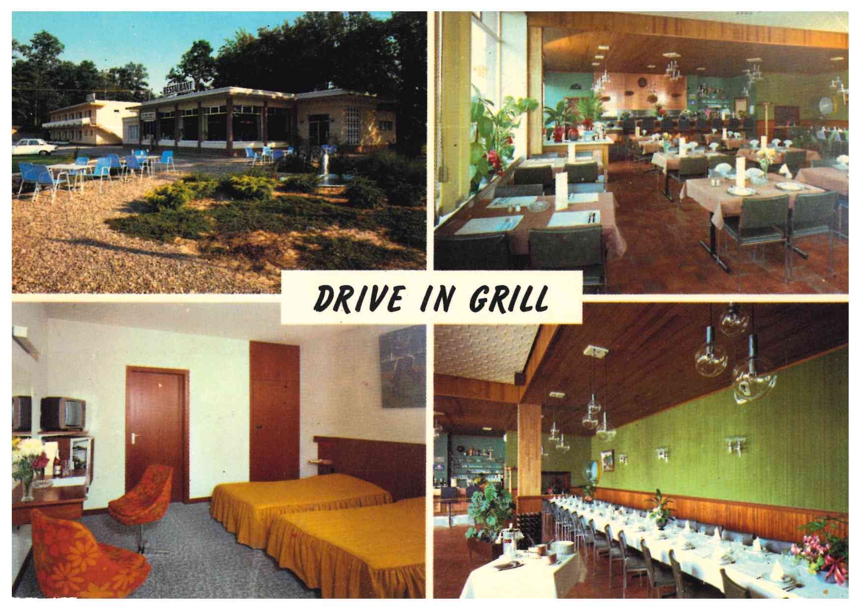 CAPELLEN. Semi-moderne Postkarte des Drive in Grill, 60/70er Jahre.