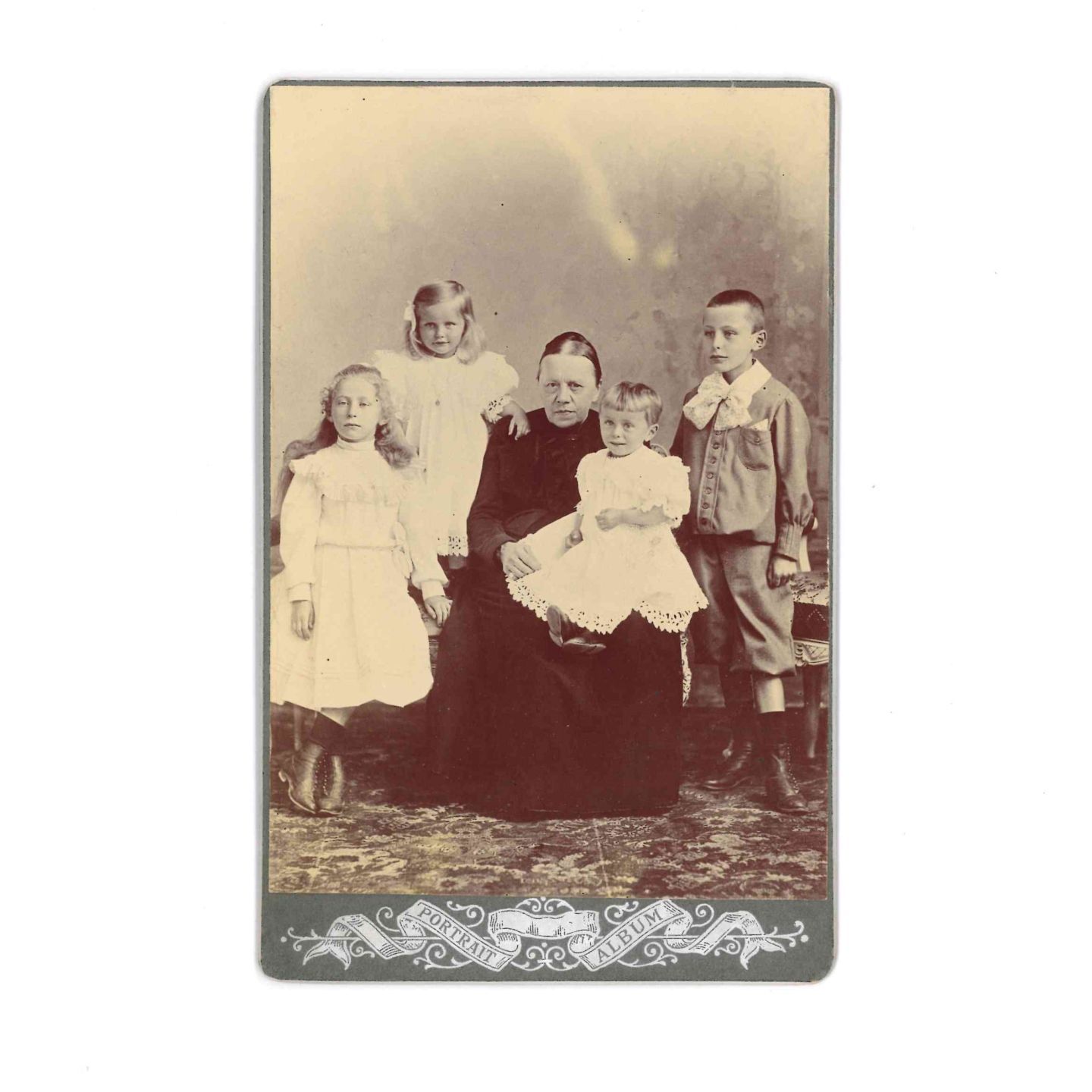 KNOOD. Fotografie einer Großmutter mit ihren Enkelkindern, Kabinettformat, Stempel der Fotografen Franc. & Jos. Knood aus Beggen (Luxemburg)