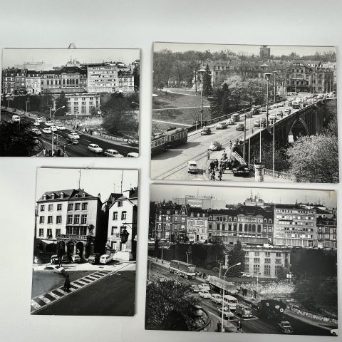 TONY KRIER. Eine Gruppe von 4 großen Fotografien mit Ansichten der Stadt Luxemburg mit vielen Autos.