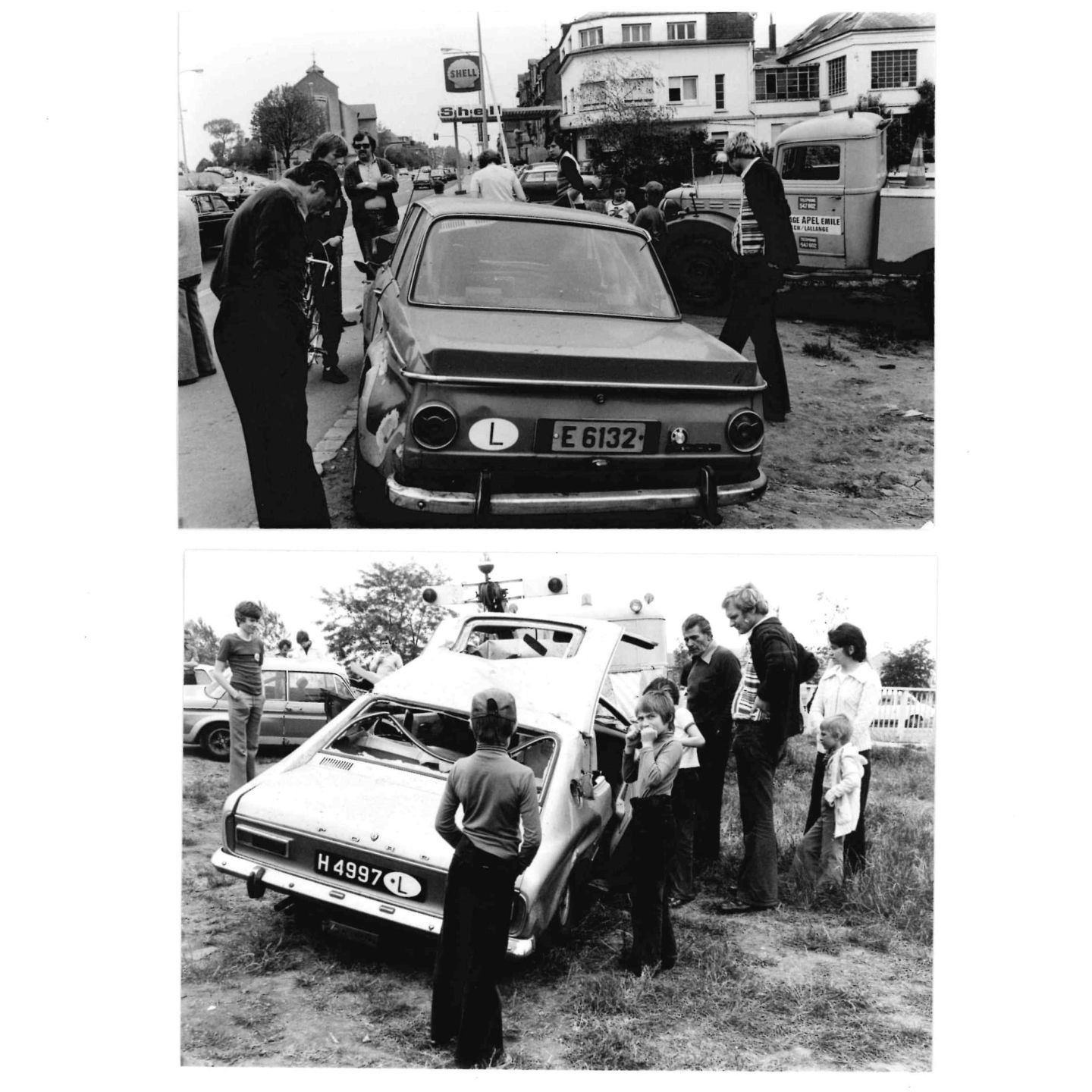 Zusammenstellung von Fotografien von Autounfällen aus den 70er Jahren, Sammlung Mersch
