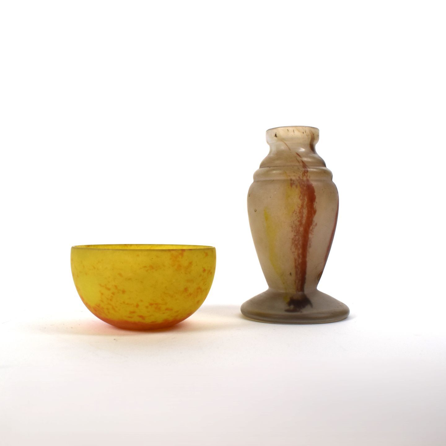 Set aus Glaspaste, signiert LORRAIN: Vase und kleine Schale als Einzelstück
