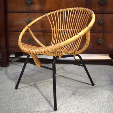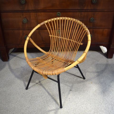 Vintage Rattan Sessel aus den 60er Jahren, holländisches Design, schwarzes Metall