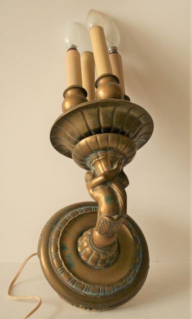 Bronzene Wandleuchte mit 4 Lichtern, Atlanter, der eine Schale trägt, Ende XIX.