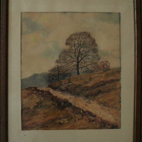 Aquarell: Weg an einem Hügelhang im Herbst, Signatur ML und Datum 1934 - Maße: 54 x 44 cm