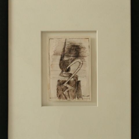 Emile KIRSCHT (1913-1994), luxemburgischer Maler, Tuschezeichnung: Komposition, kunstvoll gerahmt, 60er Jahre - Maße: 37 x 31 cm