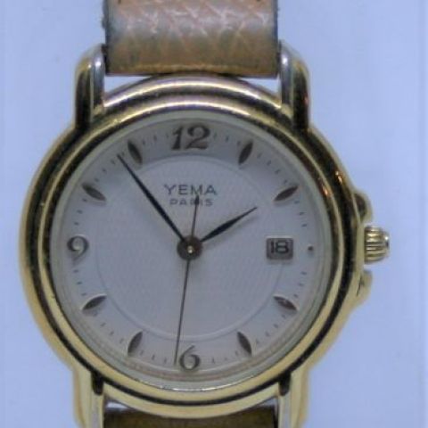 OMEGA Damenarmbanduhr, 50er Jahre, Gehäuse aus 750er Gelbgold, Modell 511001, Zifferblatt ohne Ziffern, Glas an zwei Stellen gespalten, Lederarmband (Mechanismus muss überholt werden) - Durchmesser: 14,5 mm, Dicke: 6 mm, Gewicht: 8,54 g