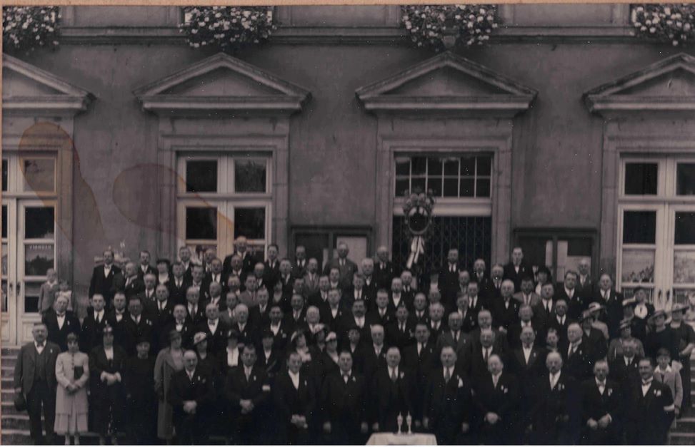 Fotografie der Zunft der Bäckermeister 1935 vor dem Rathaus der Stadt Luxemburg (22 x 28 cm), wasserfleckig + Société des Sciences Médicales in Mondorf-Les-Bains 1959 vom Studio FEY Frères