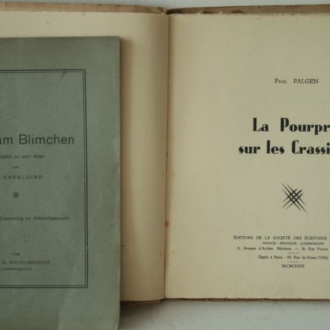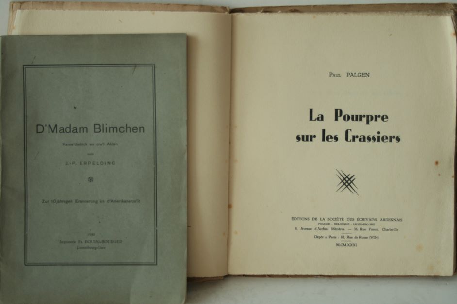 Paul PALGEN: La Pourpre sur les crassiers, Originalausgabe, 1931, schöne Sendung an die Académie Royale de langue de Liège + J.-P. ERPELDING: D'Madame Blimchen, 1930