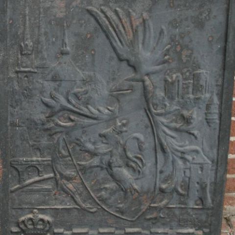 Kaminaufsatz, der bei der Befreiung des Landes hergestellt wurde, mit dem großherzoglichen Wappen, der Stadt Luxemburg und dem Text eines patriotischen Liedes und den Daten 10.5.1940-10.9.1944 - Maße: 54 x 76 cm