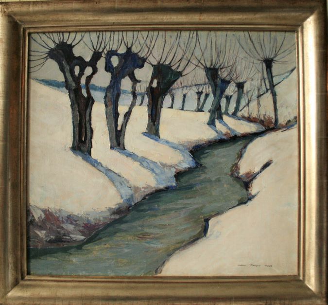 Nico KLOPP (1894-1930), luxemburgischer Maler und Grafiker, Öl auf Leinwand: Weider im Schnee, Signatur unten rechts und Datum 1924, handschriftliche Erwähnung des Malers auf der Rückseite - Abmessungen Außerhalb des Rahmens: 45 x 50 cm
