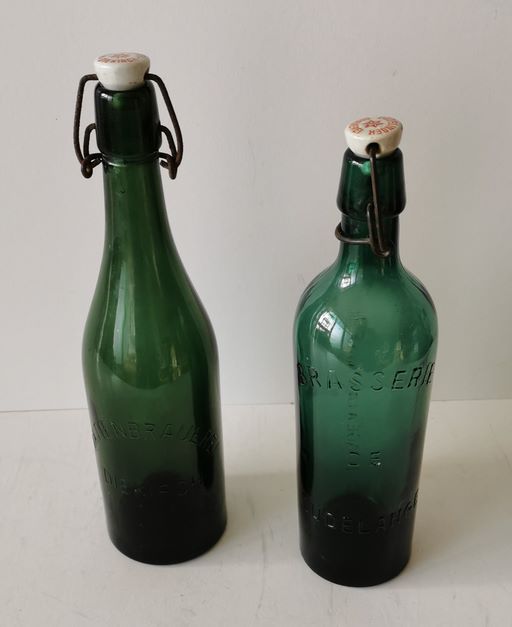 Set bestehend aus 2 Bierflaschen aus Glas mit Porzellanverschluss :DUDELINGER Brauerei & Aktienbrauerei DIEKIRCH