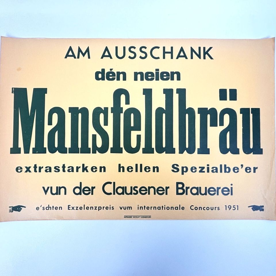 Clausen Vintage Poster: Mansfeldbräu, Imprimerie Nicolay, Luxemburg, 1951