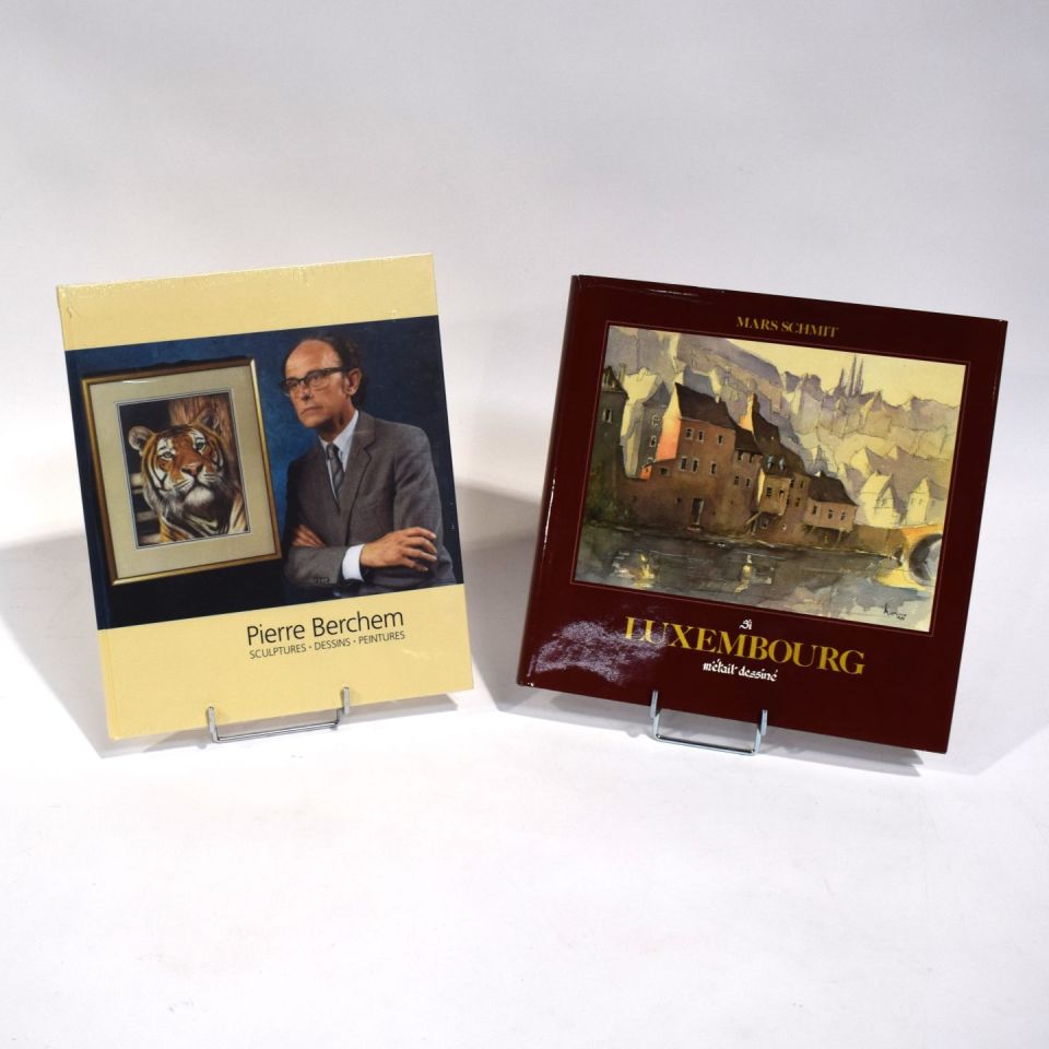 1) Pierre BERCHEM, Sculptures.Dessins.Peintures, neues Werk, 2) Mars SCHMIT: Si Luxembourg m'était dessiné, 1983, mit autographischer Unterschrift des Autors, Band I, Imprimerie St-Paul