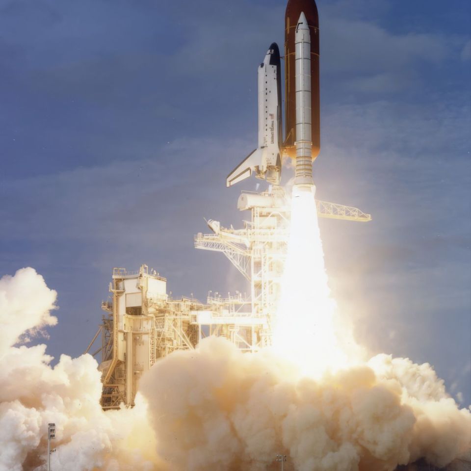 Zeitgenössische Fotografie des Starts der Raumfähre Endeavour, Mission STS-54