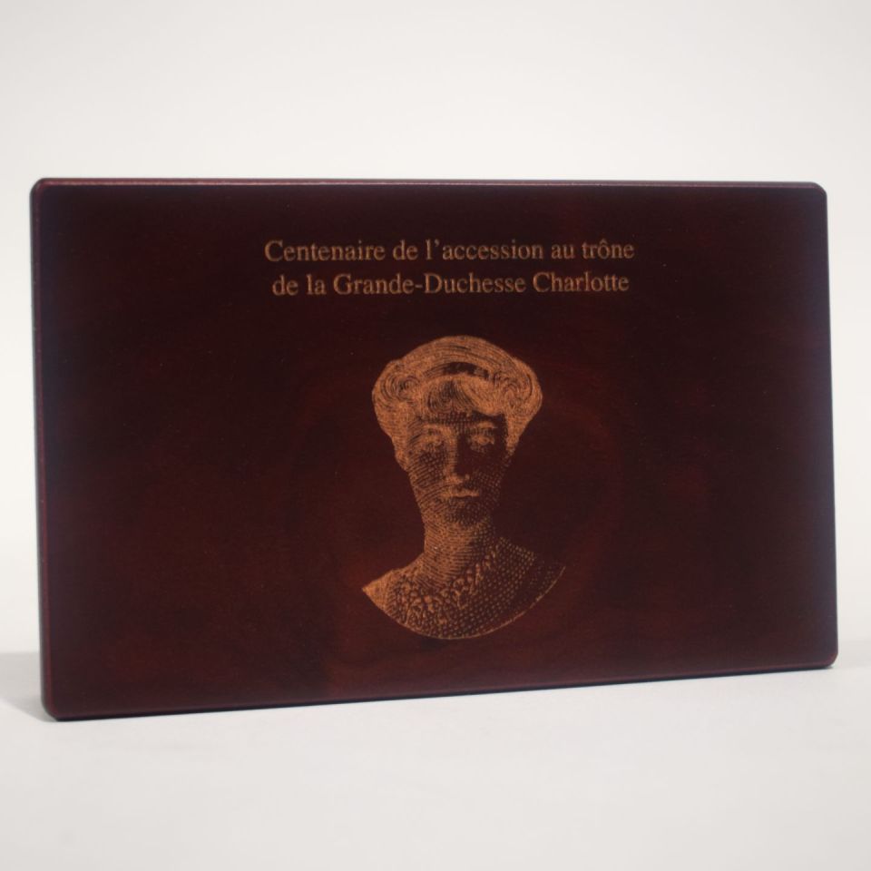 Gedenkbox: Münze und Briefmarke zum 100-jährigen Jubiläum von Großherzogin Charlotte