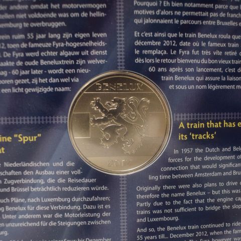 EURO. Münztasche in Plexiglas: Benelux Euroset, Der Benelux-Zug ist 60 Jahre alt, 1957-2017, Ausgabe Banque Centrale du Luxembourg, 2017