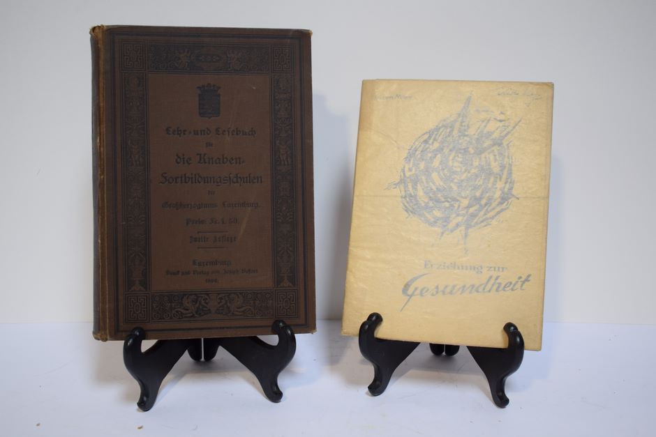 (Bildung) 1. Grossherzogliche Unterrichtskommission: Lehr- und Lesebuch für die Knaben-Fortbildungsschulen des Grossherzogtums Luxemburg, 1896. 2. Lucien Marc: Erziehung zur Gesundheit.