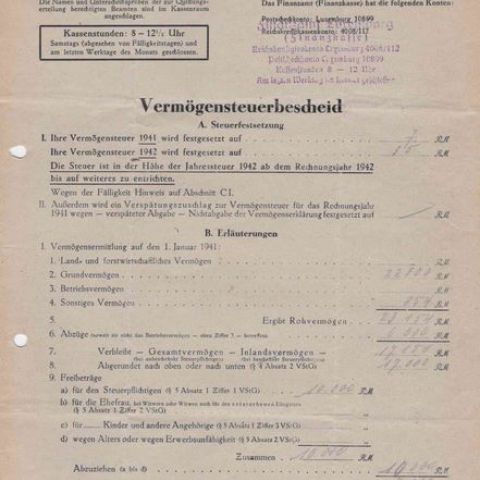 (WII) Satz von zwei Dokumenten aus der Zeit des II. Weltkrieg: 1. Steuerbescheid von 1939 und Einfuhrbescheid von 1941 (unter deutscher Besatzung).