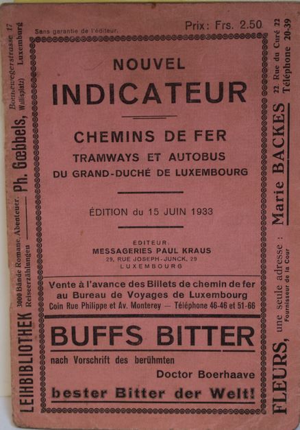 Nouvel indicateur Chemins de Fer Tramways et Autobus du Grand-Duché de Luxembourg, Ausgabe vom 15. Juni 1933