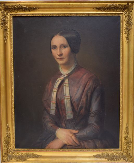 Jean-Baptiste FRESEZ (1800-1867), Die Eheleute Nic. Mersch-Mousel, Paar Ölgemälde auf Leinwand, eines signiert und datiert 1850 unten rechts, 81.5 x 65 cm (Haken an der Hand von Madame, zwei Restaurierungspastillen auf der Rückseite des Gemäldes von Monsieur) - Die Gemälde sind auf Seite 230 des Werkes "Biographie Nationale du pays de Luxembourg", XIXe fascicule, 1971, abgebildet. Beiliegend 2 fotografische Reproduktionen von Pit Schneider, die ebenfalls in dem genannten Werk enthalten sind.