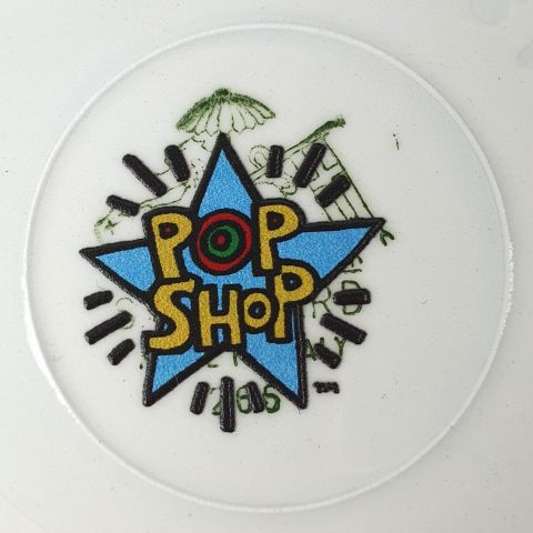 Dazu kommt eine Pop Shop Untertasse mit einer Signatur auf der Vorderseite.