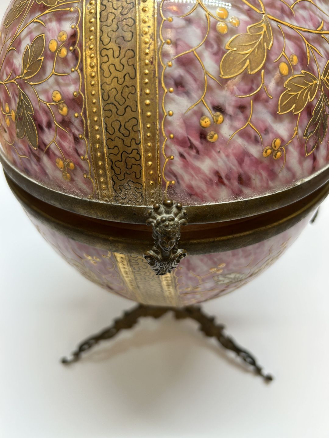 Schatulle mit 9 eiförmigen Flakons auf einem dreibeinigen Fuß mit Blumendekor.