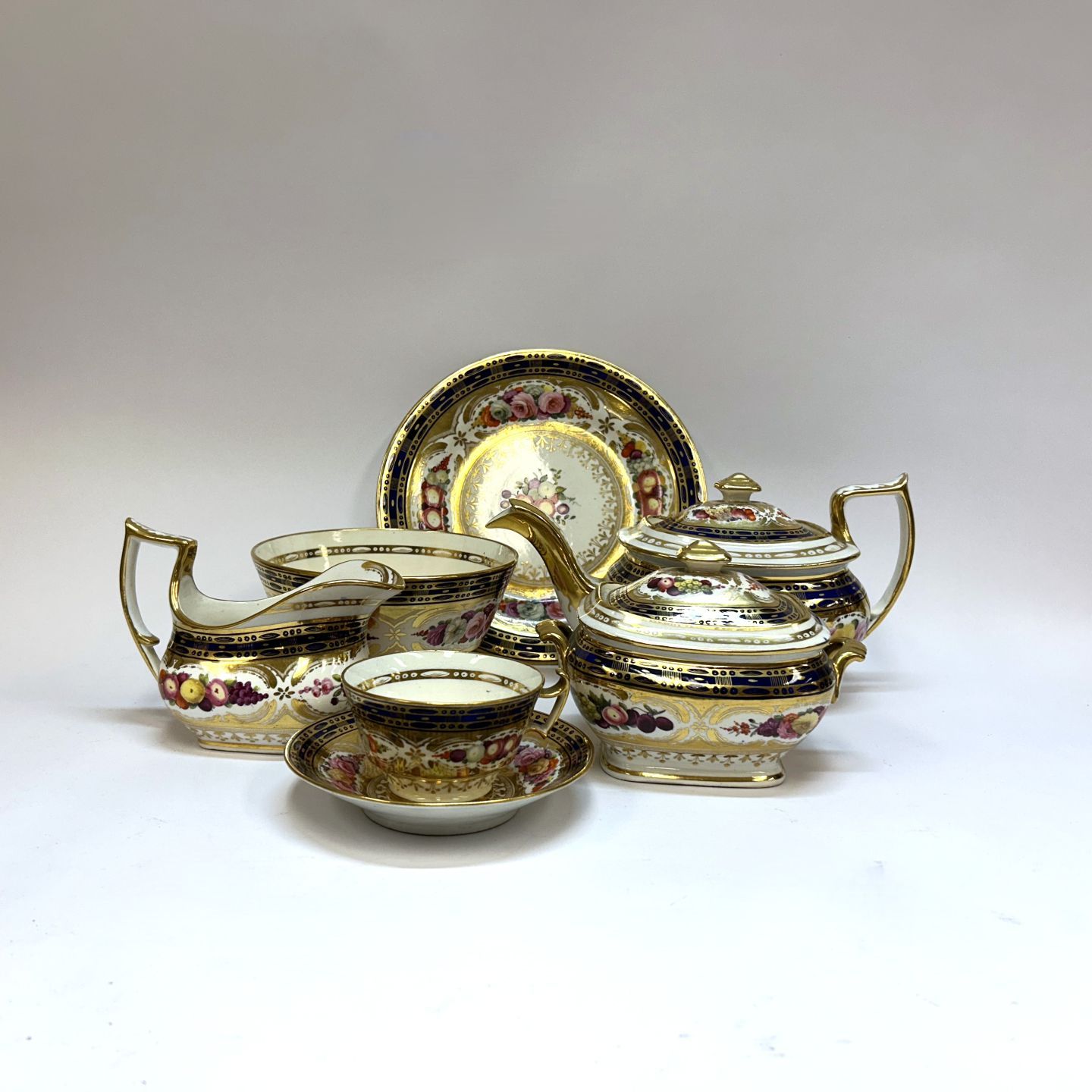 Teeservice aus Coalport Porzellan, Früchte- und Blumendekor, um 1810-1820