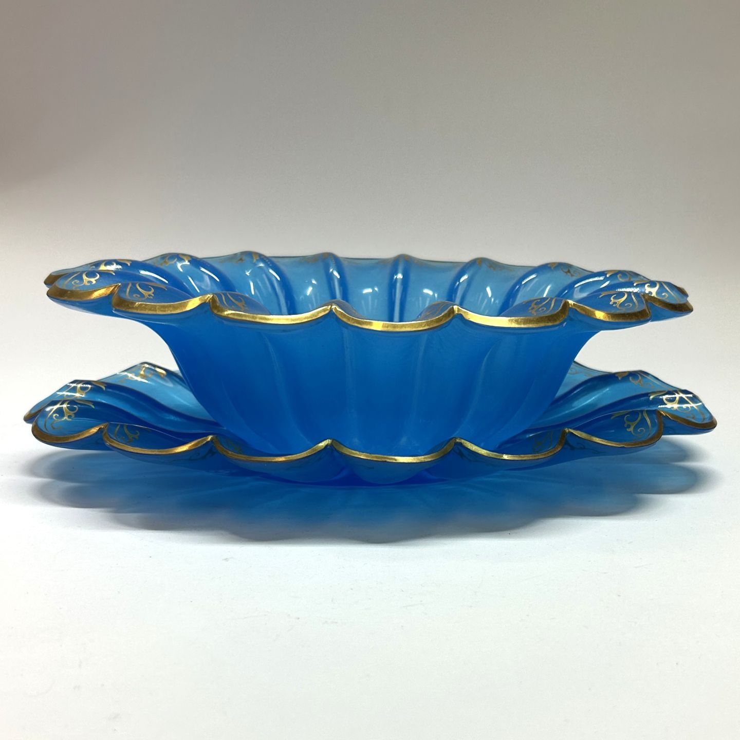 SERVICE aus blauem Glas mit goldenem Rand, tschechische Arbeit aus dem 19.