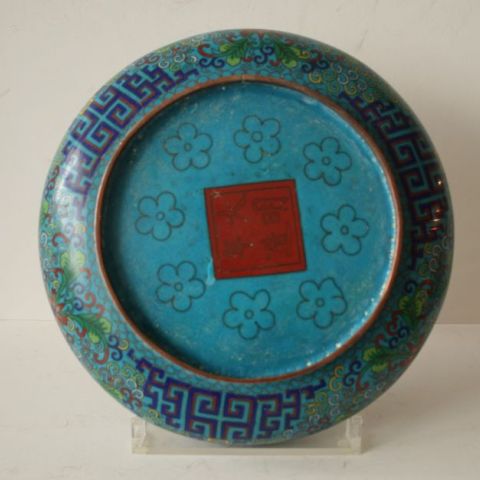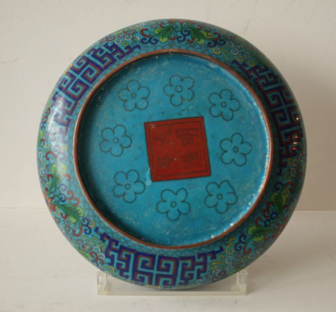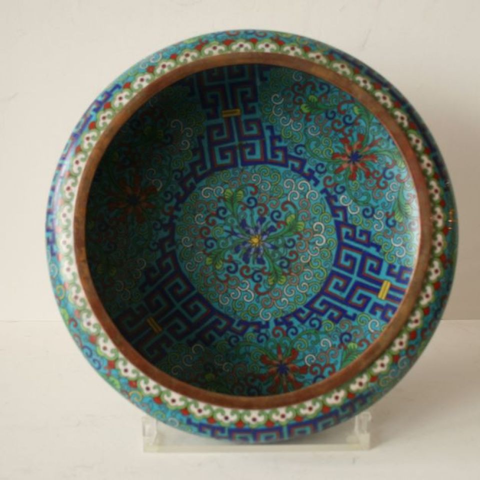 Copper and cloisonné enamel bowl, China, 20th century, decorated with lotus, foliage and geometric motifs, apocryphal Ming mark on the base - Diameter : 30 cm, Height : 9 cm