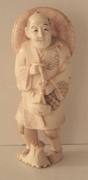 Figure with a satchel, in ivory, Japan, circa 1930 / 1940 - Height : 10,5 cm