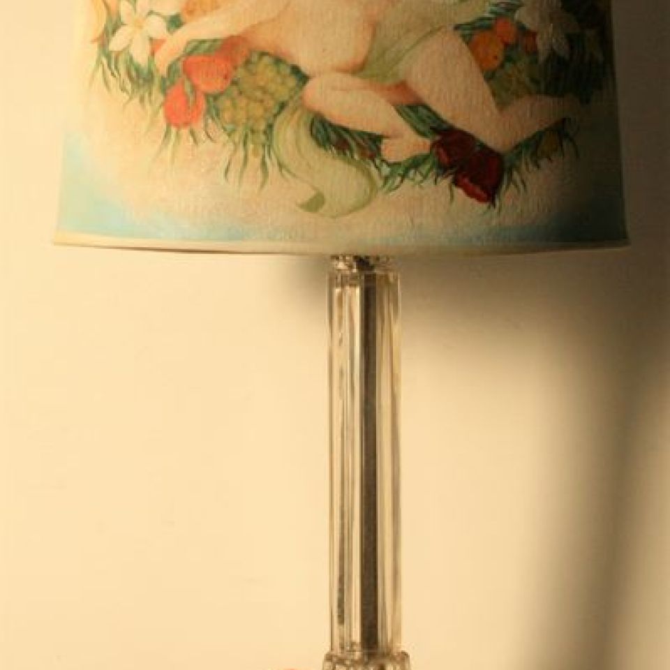 Art Deco lamp in molded glass, base with twisted spheres, shaft with curved spindles, good condition - Height : 64 cm