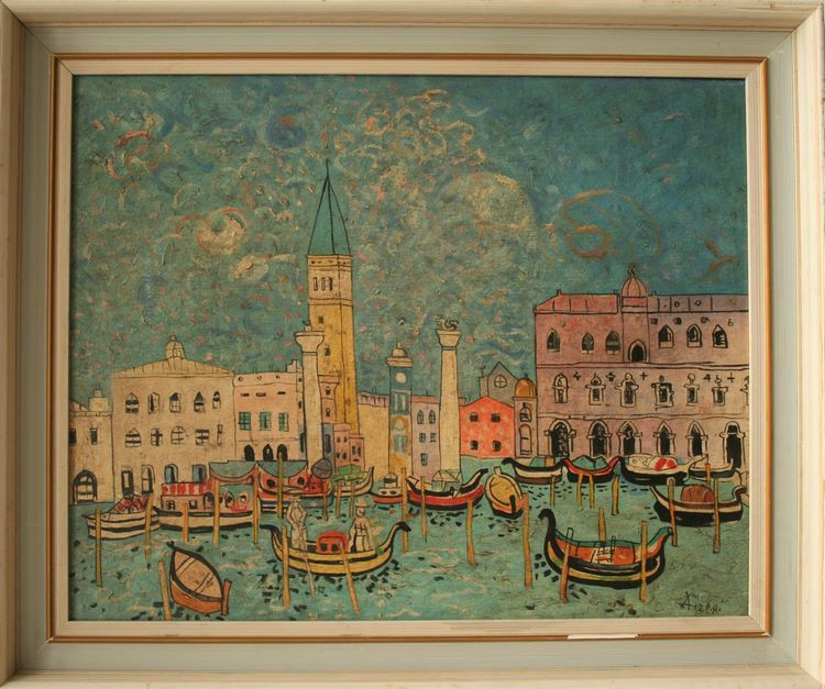 Paul AIZPIRI (1919-2016), French painter and lithographer attached to the School of Paris, Oil on canvas: Gondolas in front of St. Mark's Square in Venice, signed lower right - Size out of frame: 40 x 50 cm