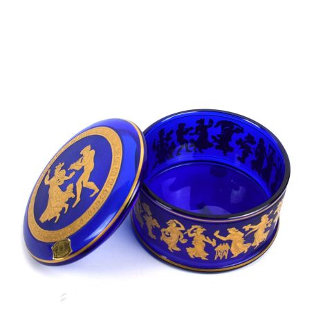Val Saint Lambert cut crystal server with swan and gold-plated mounting
