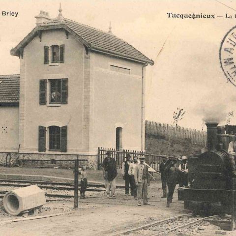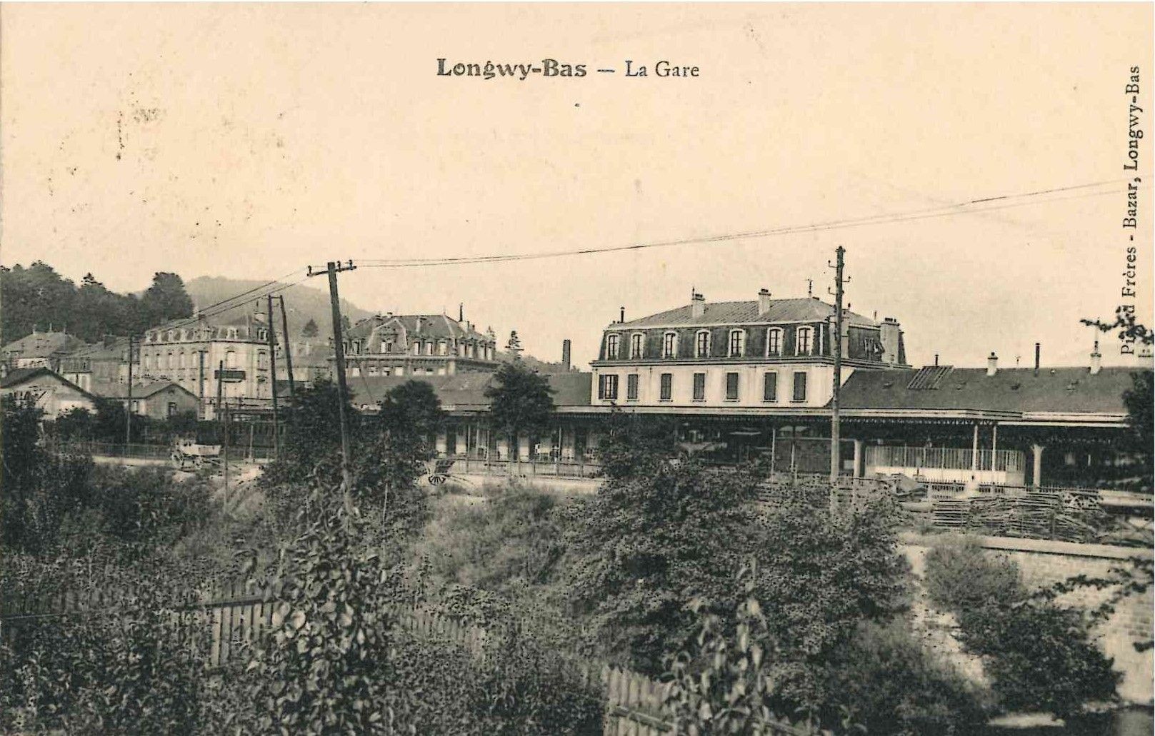 Antique postcard of Longwy railway station, Picard Frères 1908 edition.