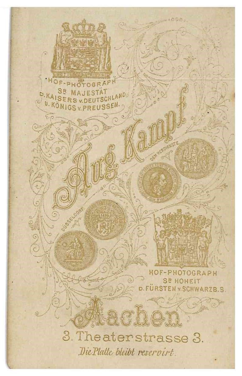 AACHEN. Photographic portrait of a young man by photographer pA. Kampf, circa 1870/80.