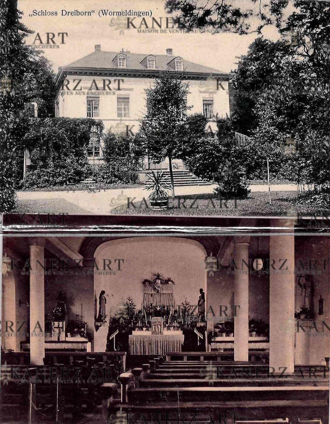 Postcard "Scloss Dreiborn" (Wormeldingen), ca 1910 + Missionhaus der Missionare des Hl. Franz von Sales, ca 1910