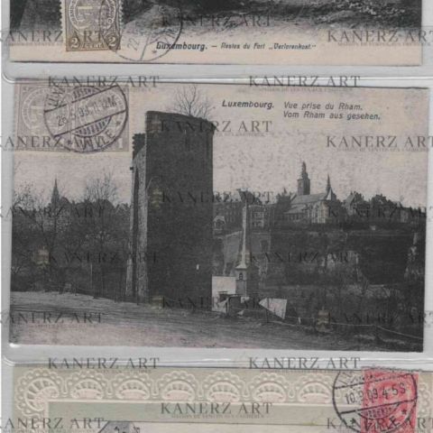 Postcard of La Gare with horse-drawn carriages, 1915 + Gare Centrale (in color), HL, 1931