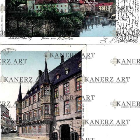 Rare reunion of two colorized postcards of Luxembourg-Palais and von Pfaffenthal